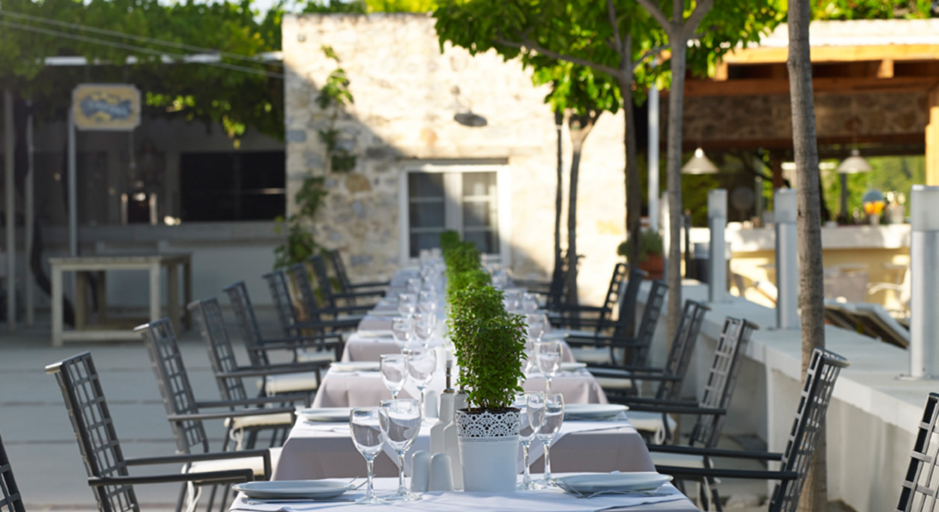 A buffet dinner at the Atrium Hotel Restaurant is the perfect way to start off your evening. Enjoy traditional Greek dishes with touches of Mediterranean cuisine, prepared using only the finest ingredients by our talented chef and kitchen staff, and served in the open-air dining area by the pool, with a panoramic sea view. You’ll find that the twilight or night time view of the sea from the Restaurant is very different to the morning one, but just as enchanting. In fact, while back home dinner usually means the day is drawing to its end, dinner at the Atrium Hotel Restaurant is only the beginning of a beautiful summer evening!