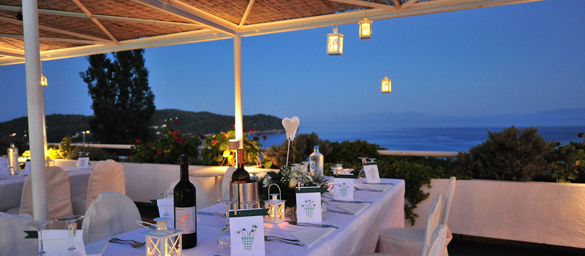 Whether your choose our beautiful patio for a picturesque outdoor wedding reception overlooking the Aegean or a beautiful beach for an unforgettable experience, your wedding will be a truly memorable event.